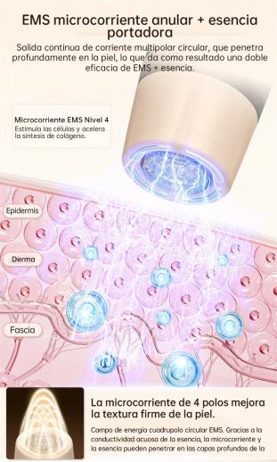 El color dorado se ve genial y, combinado con la esencia de colágeno, el efecto del tratamiento EMS es claramente perceptible.