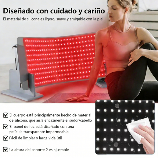 - * 【Tamaño perfecto y fácil de limpiar】: El diseño espacioso de 25"X10,5" pulgadas ofrece amplio espacio para una experiencia inmersiva y cómoda. Aplicable a todo el cuerpo: cintura, espalda, cuello, articulaciones, hombros, rodillas, cara, etc. La terapia de luz roja está hecha de un material profesional de silicona que aísla el sudor y el aceite en la piel, facilitando la limpieza de la almohadilla.