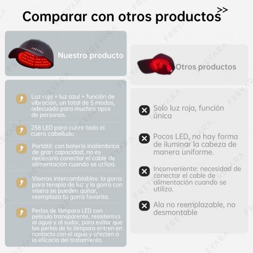 - * 【Luz roja + luz azul de doble longitud de onda】La luz roja estimula la circulación, mientras que la luz azul ayuda a mantener el cuero cabelludo limpio y fresco.Reembolso incondicional de 30 días, garantía de un año.