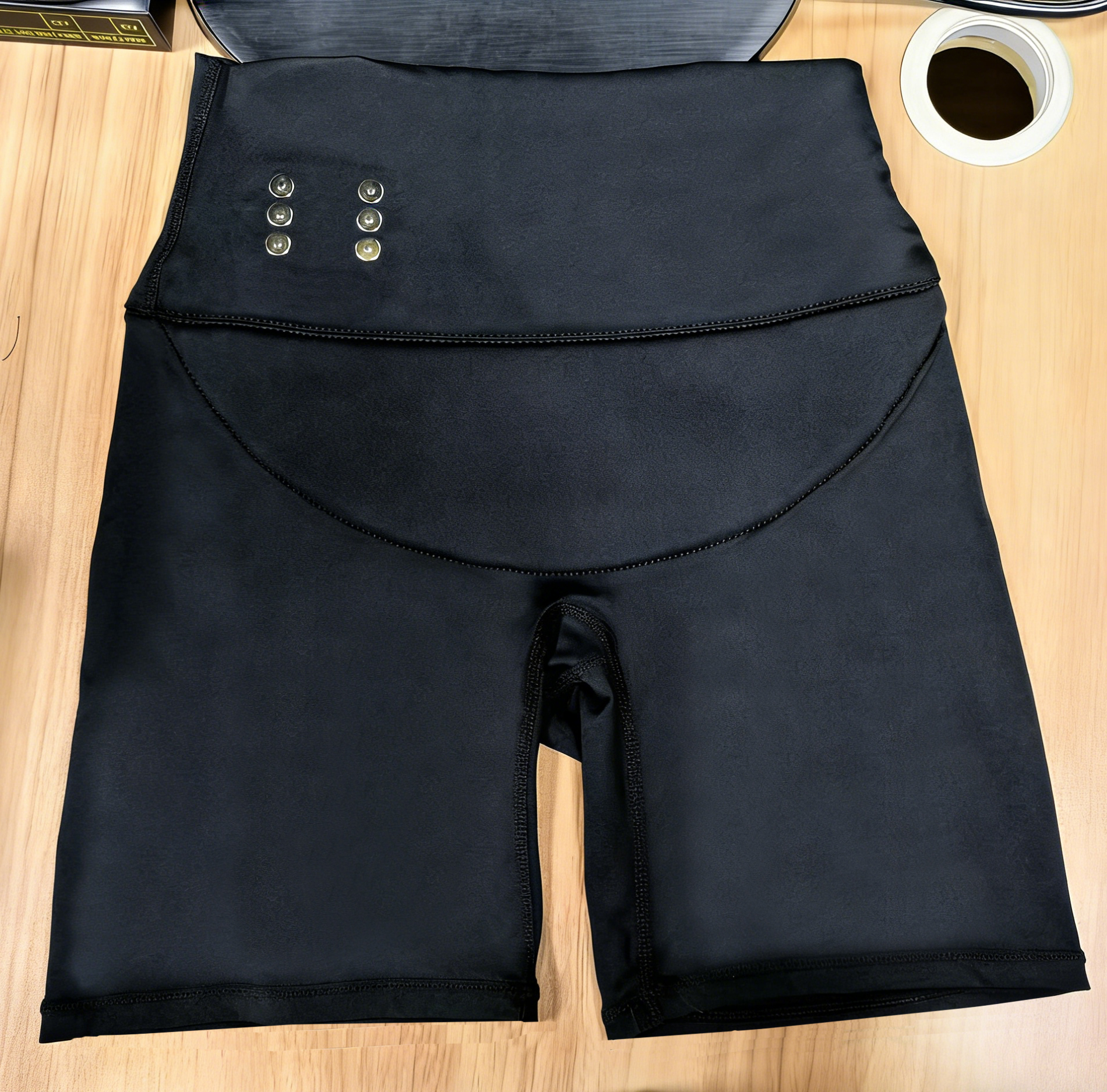 1. Después de colocarse los pantalones de yoga correctamente, fije la unidad principal a los pantalones en la orientación correcta. Asegúrese de que los pantalones de yoga estén en contacto directo con la piel para un masaje óptimo.