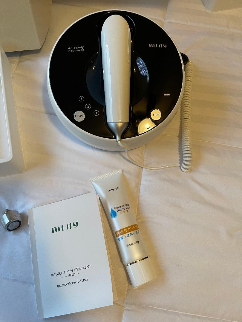 I was so excited to try it right after it arrived. The instrument is so easy to use. Amazingly simple with the operation. It is amazingly comfortable when using, just like at the beauty salon. My face feels hot and, I can feel the pulling of the skin. I have been using it for almost 2 weeks and see a difference in my skin. The biggest difference is my eyes. They are open and lifted and are not laying on my eyelid. Sometimes I apply a hydrating mask when I finish works with MLAY Rf. I feel more than comfortable. I am using it on my tummy and breast area as well for lifting and tightening my skin because I think that the skin is also having its part of support in order of all uplifting processes in this area. I do find the skin becomes whiter and softer. So amazing. I did not expect the wrinkle effect to be good very soon. This thing works. I like it so much.